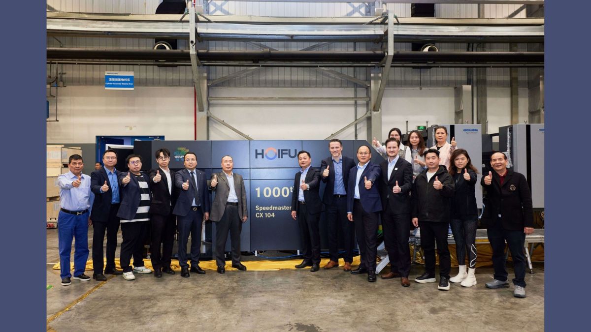 The impressive price-performance ratio of the Speedmaster CX 104 makes it a popular choice among a wide range of customers and therefore the bestseller in the product portfolio of Heidelberger Druckmaschinen AG (HEIDELBERG). The 1,000th press in this series has now rolled off the production line and is destined for the Hoifu Group, a Chinese packaging printer with around 2,500 employees that is enjoying strong growth. The 14-unit special configuration equipped for UV printing will soon start operating at the new site in Yancheng, where it will be integrated into the company’s end-to-end Prinect-based workflow. By making this strategic investment, the Hoifu Group is looking to tap into new markets in the premium packaging segment, especially the luxury food, beverage, and tobacco industry.
